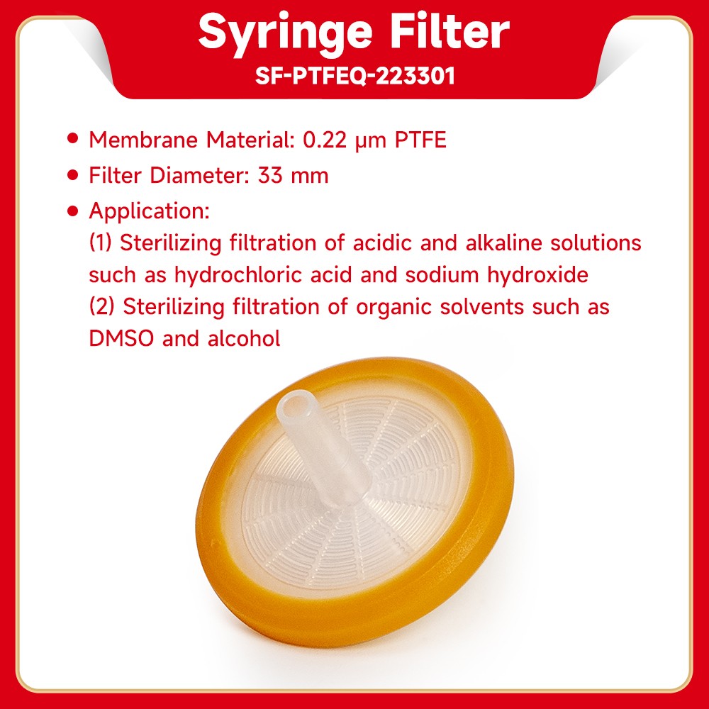 0.22μm PTFE Sterile Syringe Filter 33mm Hydrophilic Individual Packed