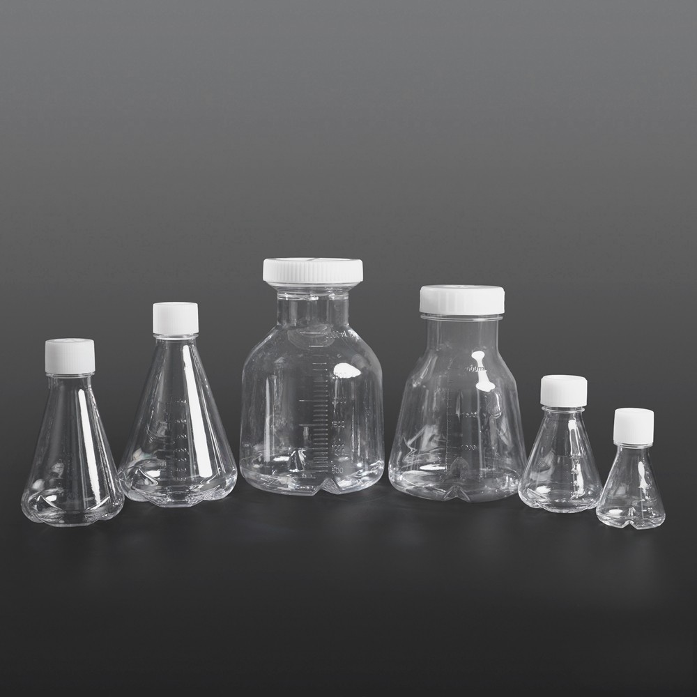 3L Erlenmeyer Flask, Vent Cap, Baffled Bottom, PC, Sterile